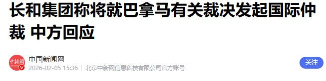 2.《长和集团称将就巴拿马有关裁决发起国际仲裁 中方回应》2026-02-05 15:36 | 来源:中国新闻网