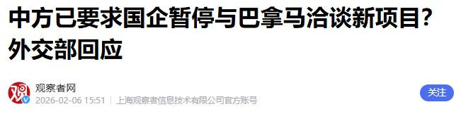 1.《中方已要求国企暂停与巴拿马洽谈新项目?外交部回应》2026-02-06 15:51 | 来源:观察者网